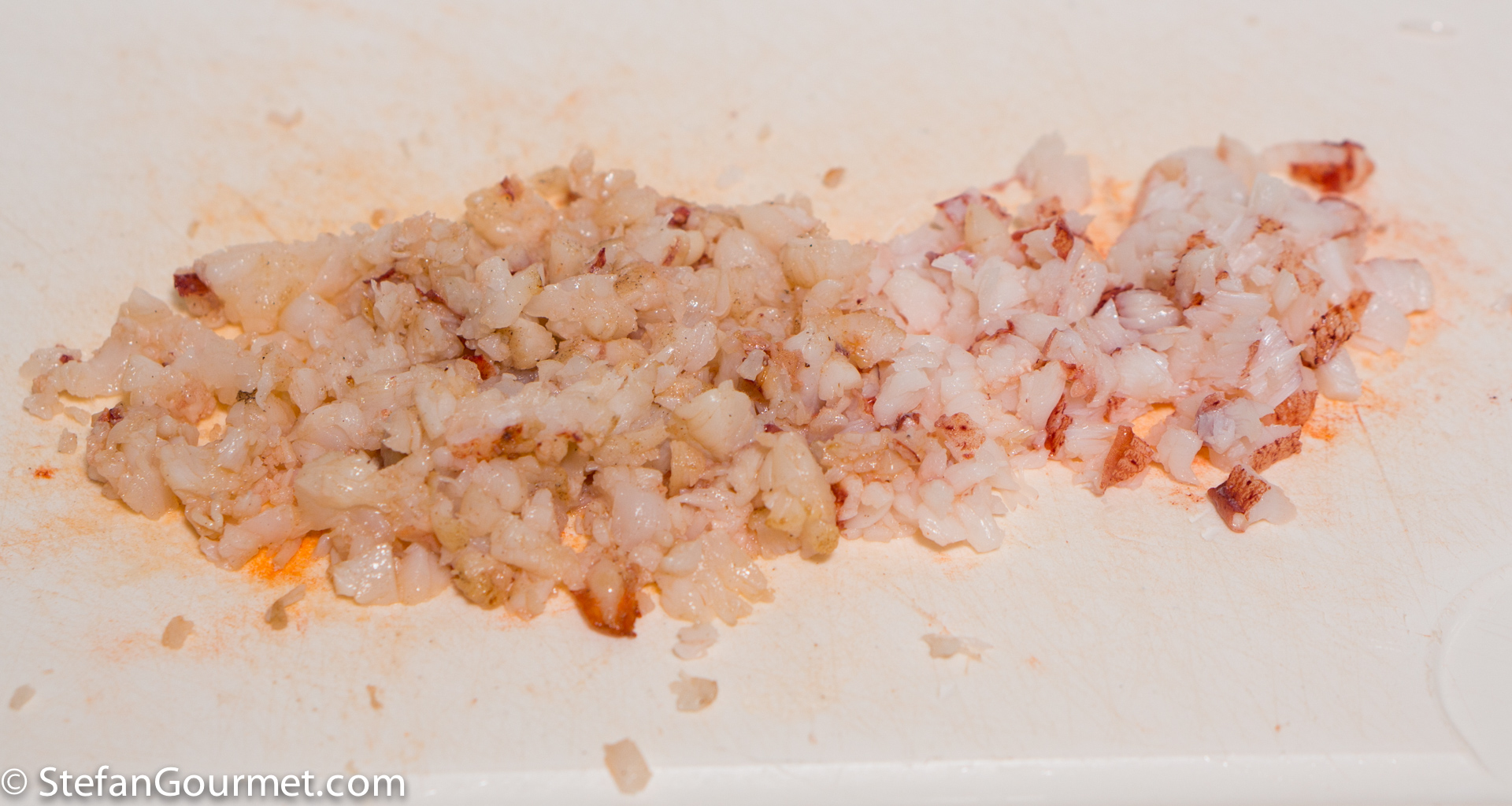Chop the ‘nice’ lobster meat into brunoise (small dice).