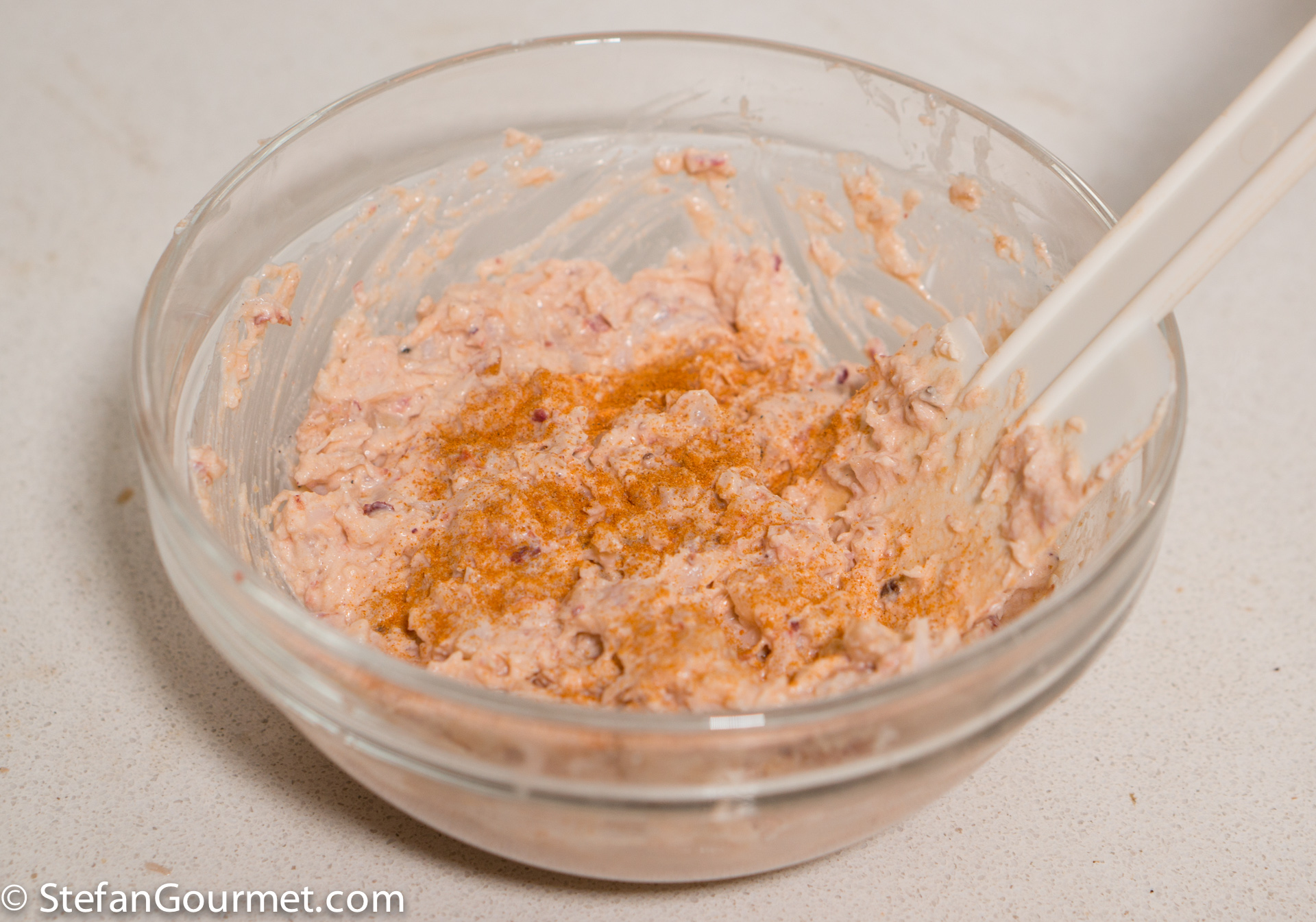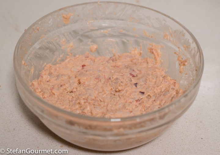 Stir well, and season with (again a little bit) of cayenne pepper. Taste it. It is very unlikely that you think salt needs to be added. If you think the flavor is too strong, you may wish to add more cream.