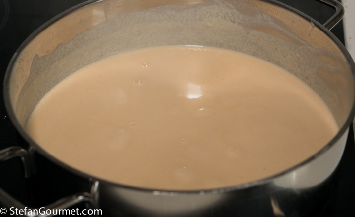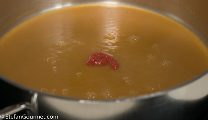 Turn off the heat. The lobster bisque sauce is now ready.