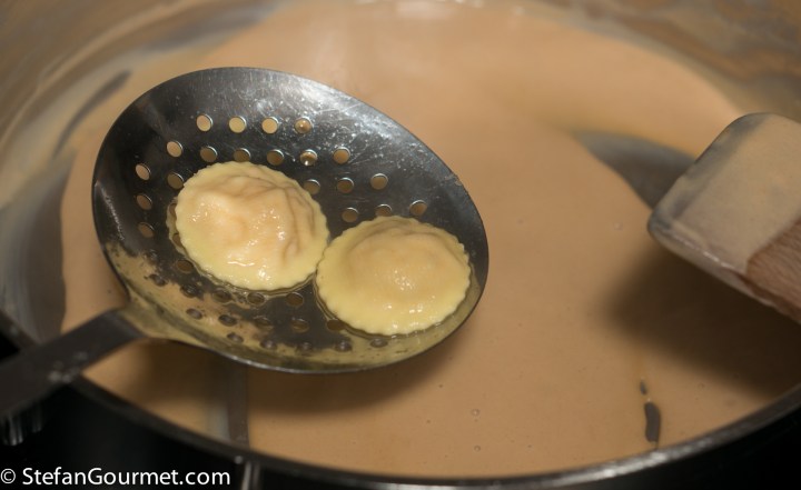 Up till here everything can be prepared in advance. Store the ravioli in a cool place for a couple of hours or in the refrigerator if for a longer time.