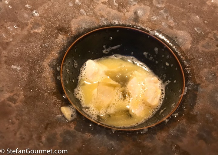 The fifth course came also in two parts: this is the heart of the pigeon (squab) with ‘potatoes’…