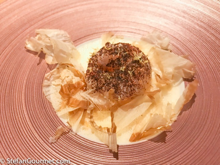 1. Oh Stefan: I have always loved you taking us along on some of your restaurant visits but this one is really special. Methinks I’ll be ‘eating’ your menu over and over today leaving necessary work aside 🙂 ! Very much like having to sit at the ‘chef’s table’ and one’s own cutlery drawer is kindf’of fun and actually practical with a menu of this length. The dishes look elegant and many quite unusual . . . the tastes must have pleased as you can be quite hard in your marking . . . love the look and sound of the scampi course. Lovely to see you commenting again . . .