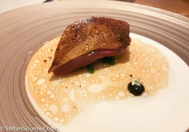 …and this the breast fillet, cooked on the BBQ, with garlic vinaigrette and black truffle. This was paired well with a Spanish garnacha. The pigeon breast was cooked to perfection and very tender. 9/10