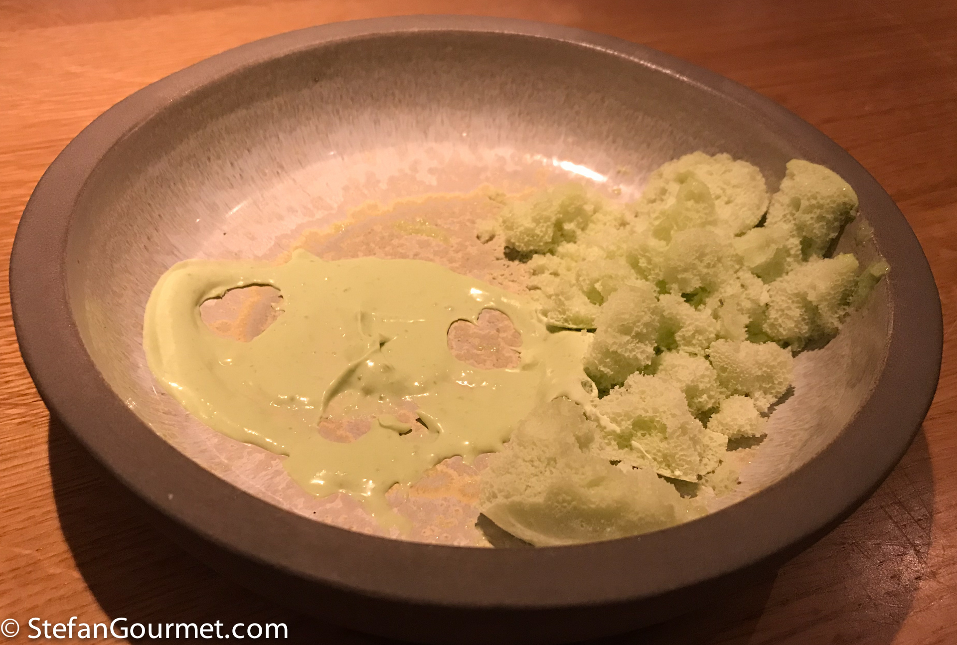 The sixth course was a very good palate cleanser: a frozen soufflé of avocado and jalapeño.