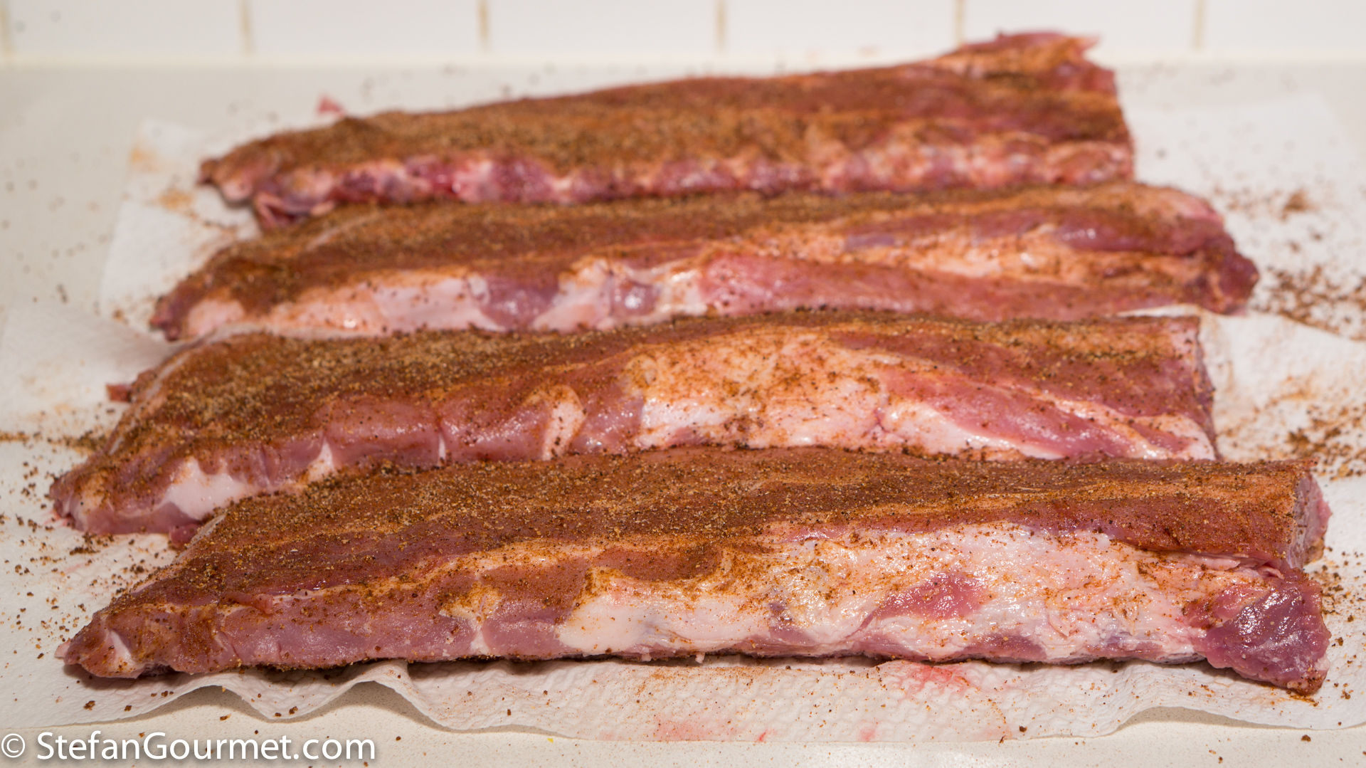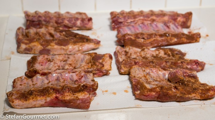The next day, take them out of the refrigerator (and out of the vacuum bag, if using) and pat the ribs dry with paper towels.