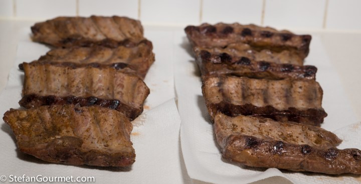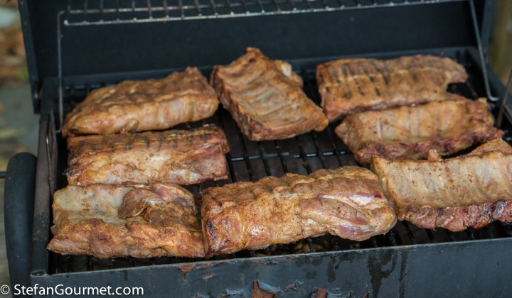I made them for a BBQ party and everybody liked them so much that they were all eaten before I managed to take a photo of what they looked like inside. So you’ll have to take my word for it: when you slice into these spareribs you will see lots of pink (but safe to eat!) and juicy meat.
