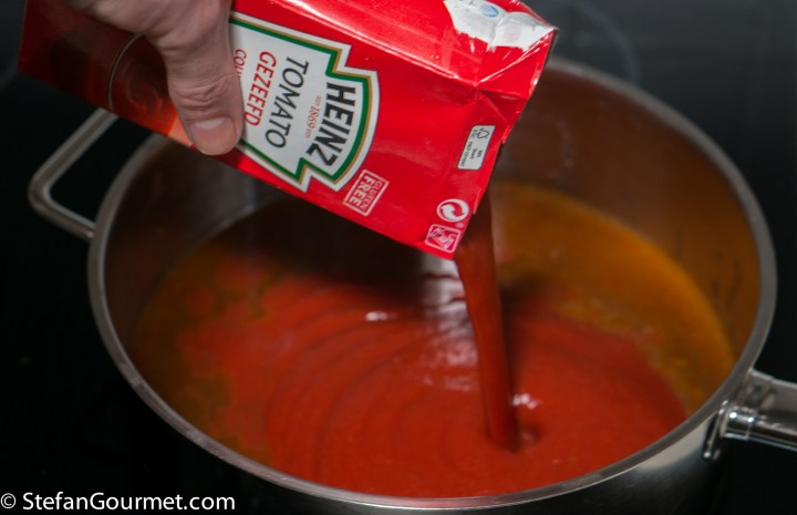 Add the sieved tomatoes to the pan with the juices to make a quick and simple but very flavorful BBQ sauce.