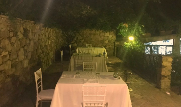 We were the only guests on a Monday evening in September, so we had 3 waiting staff and (if I counted right) 4 kitchen staff taking care of us. We were seated outside on the nice grounds of the agriturismo.