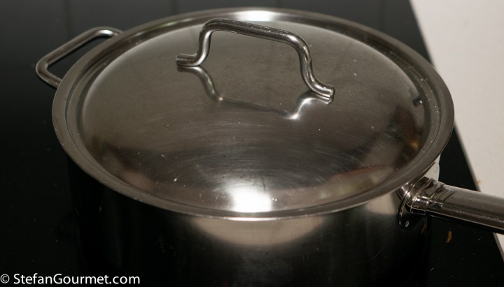 Cover the pan and allow the carrots to cook over low heat. If you sliced them in the right thickness, they will be tender but still firm to the bite by the time the pasta is done.