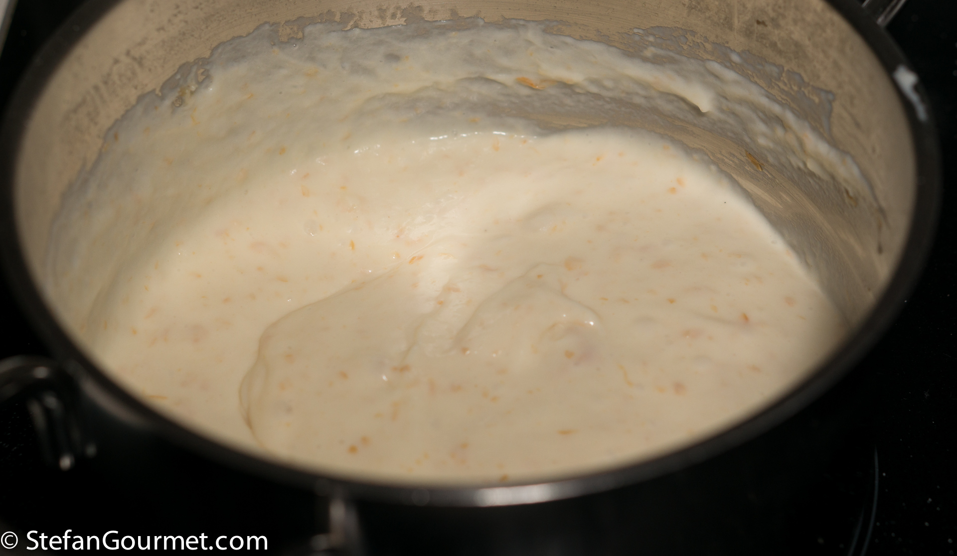 In the meantime, make a white sauce using the butter, flour, and milk as described here. The white sauce should be thinner than usual. Stir in the grated cheese in three additions over low heat…