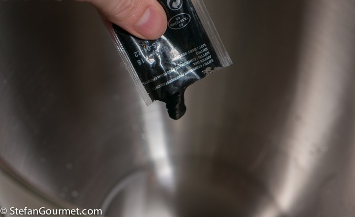 Those 4 grams of squid ink have no trouble coloring 230 grams of pasta.