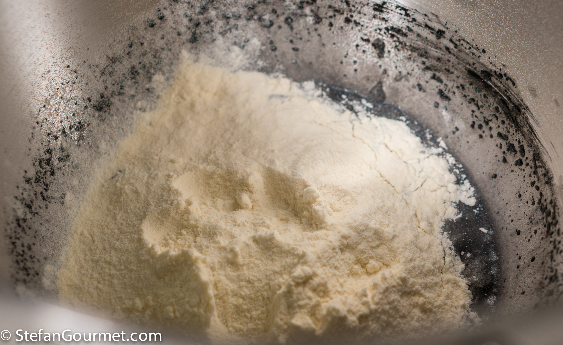 If that happens, slowly add a bit of water until the dough just comes together. Do not add more water than needed, or it will end up too sticky. If that does happen, simply add more flour.