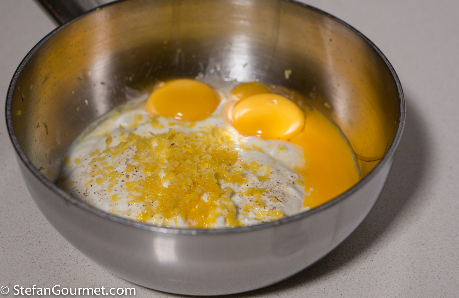 …1/4 tsp salt, freshly ground black pepper, and 3 egg yolks.