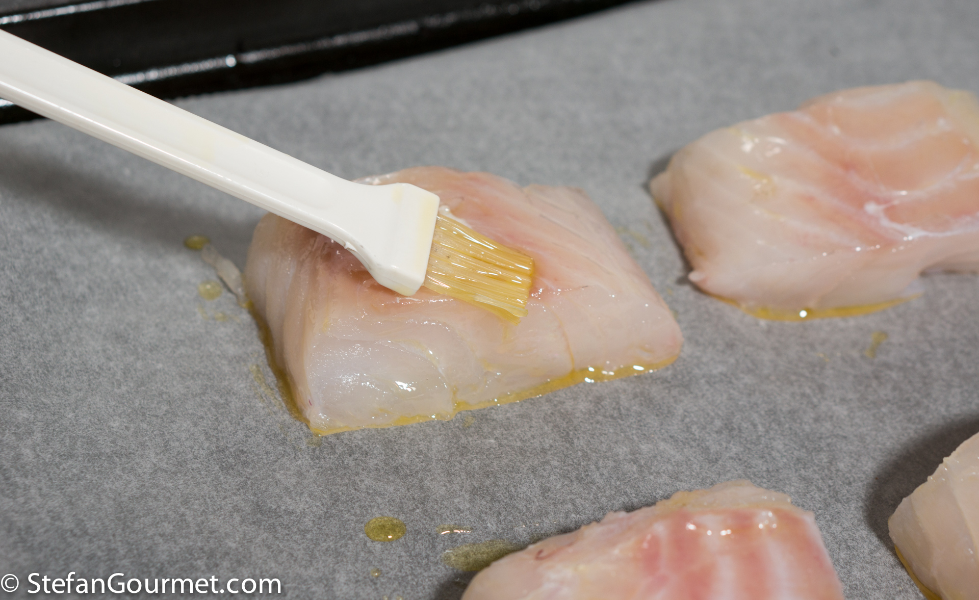 If cooking the fish in the oven, brush the pieces of fish on all sides with olive oil…