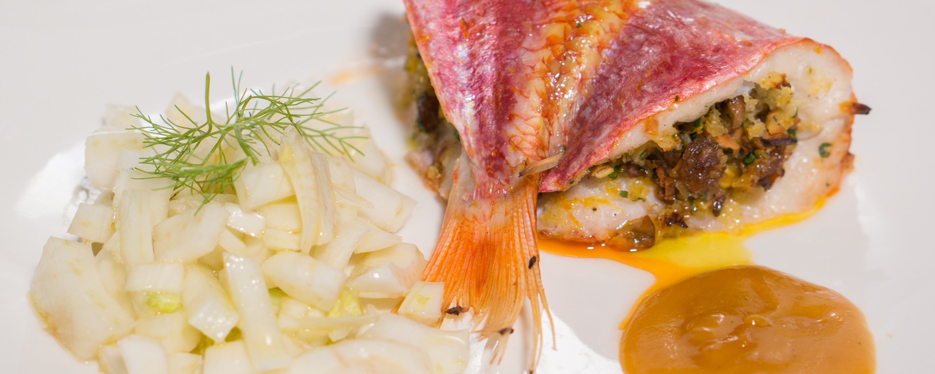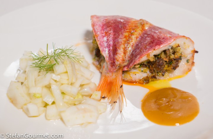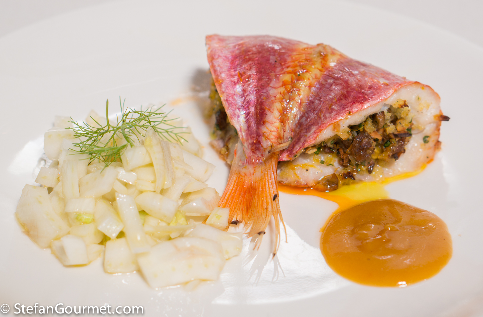 Serve the stuffed mullets with a simpel fennel salad (dressed only with salt and good extra virgin olive oil) and a dollop of the sauce.