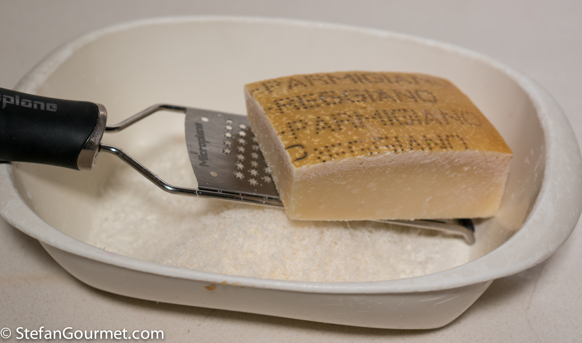 30 grams (1 oz) freshly grated parmigiano reggiano (not shown in the photo)