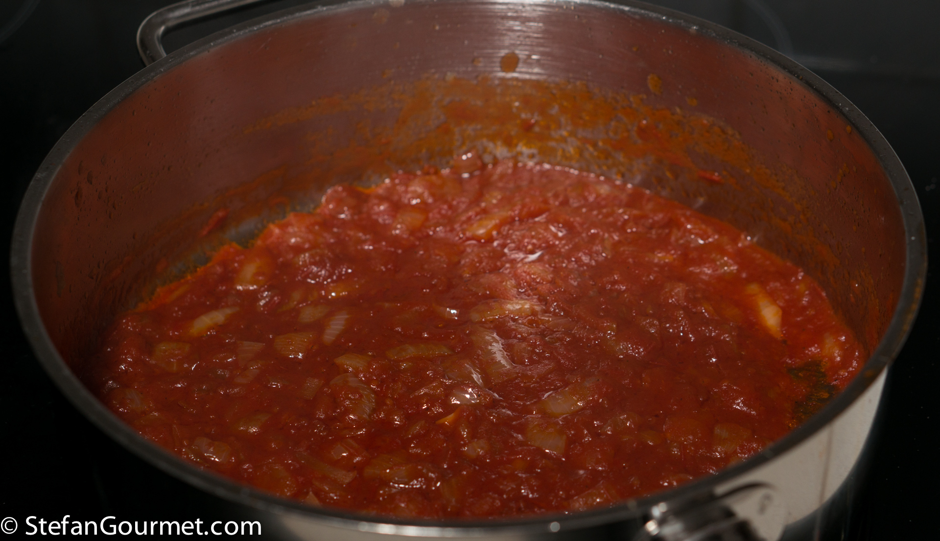 7:26pm The onion should be slightly golden by now (did you remember to stir it regularly?).