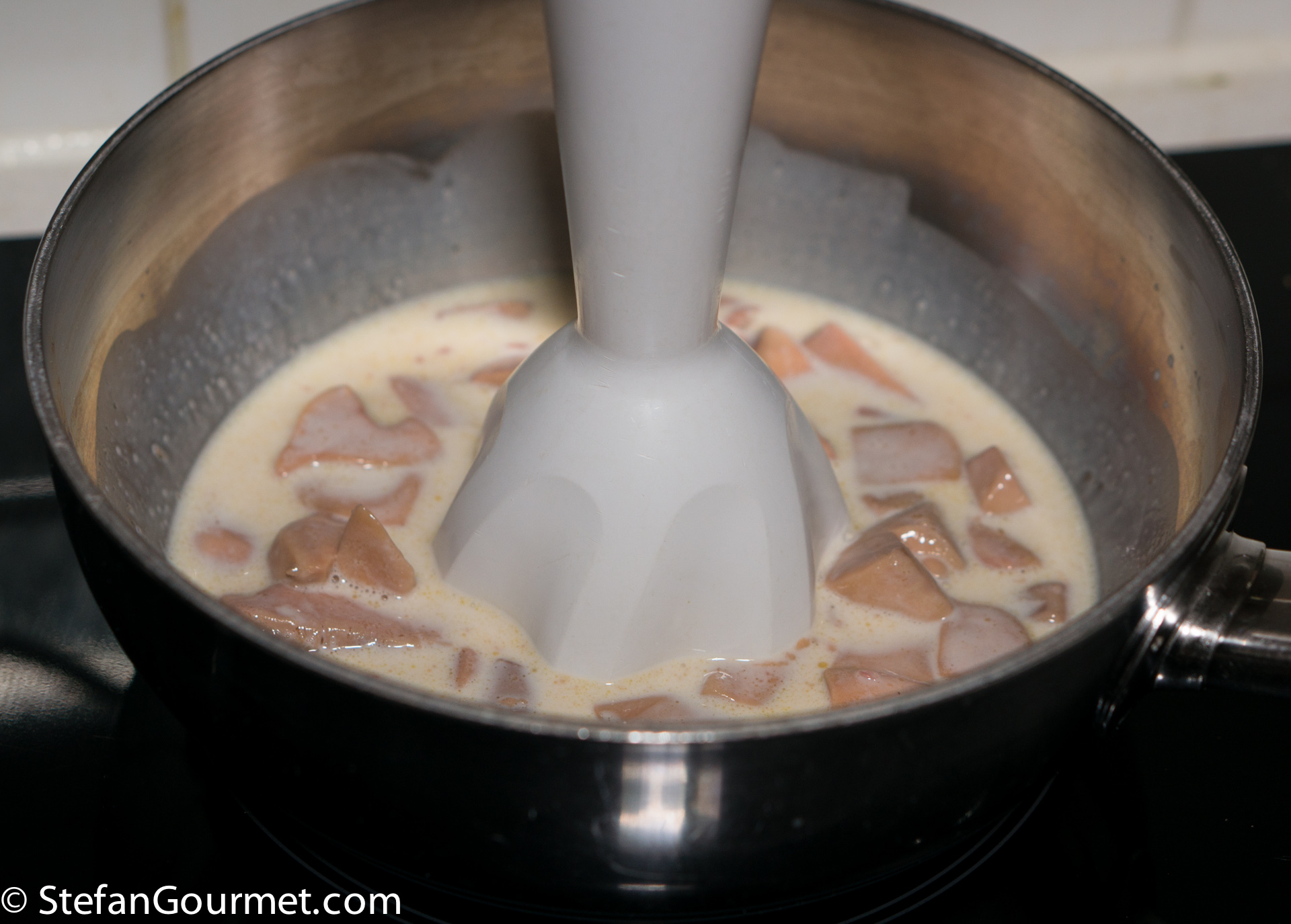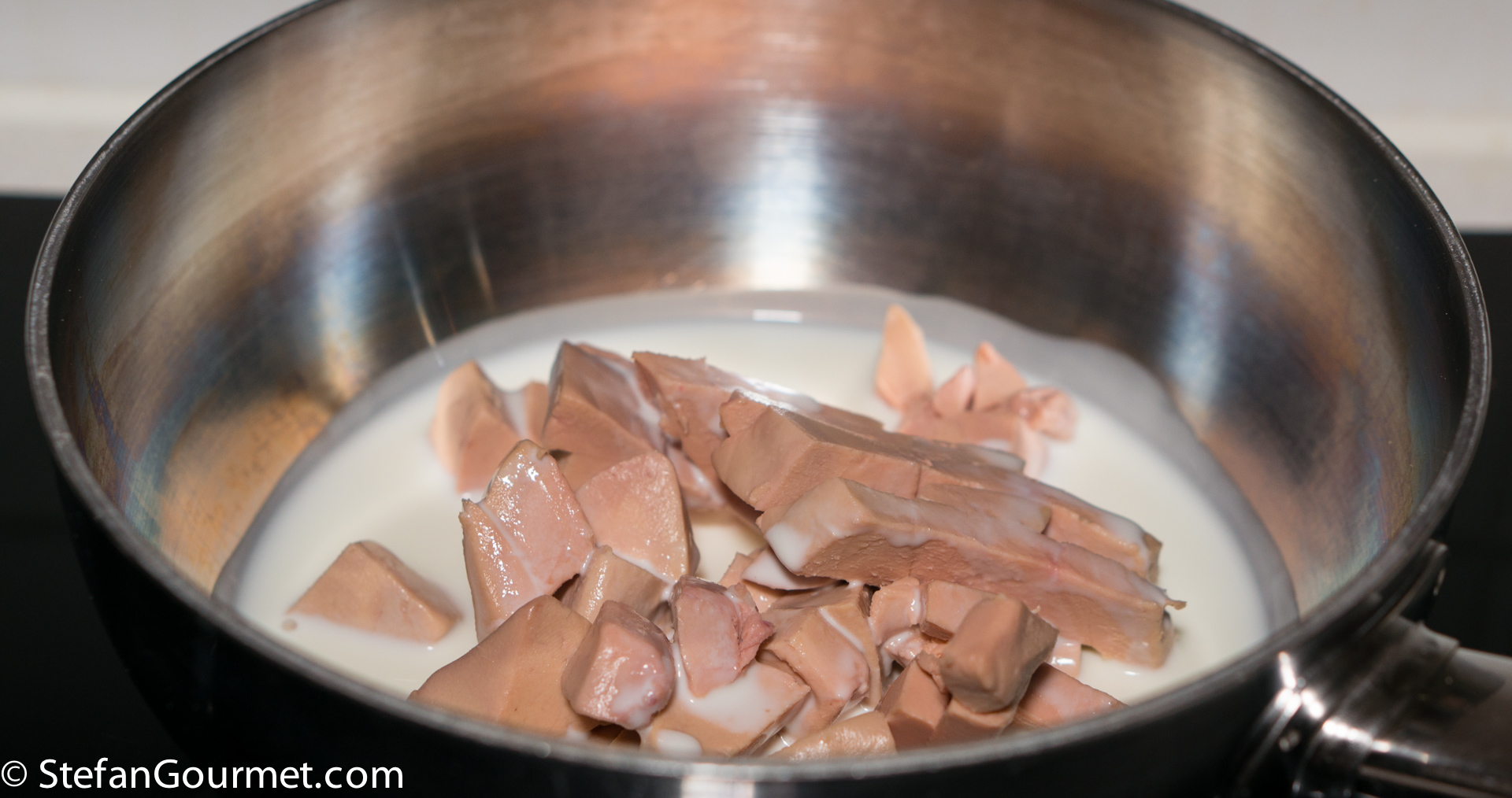 Chop the foie gras (removing any large veins you encounter) and put it in a saucepan with the cream.