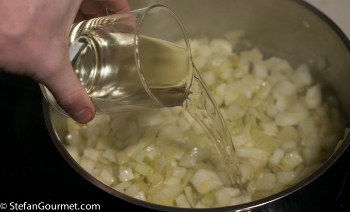 Add the white wine.