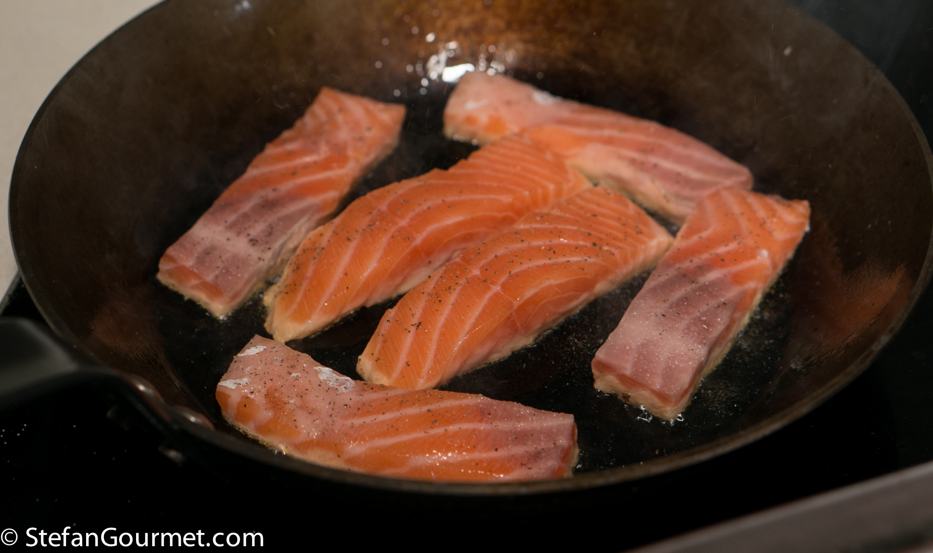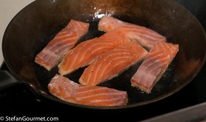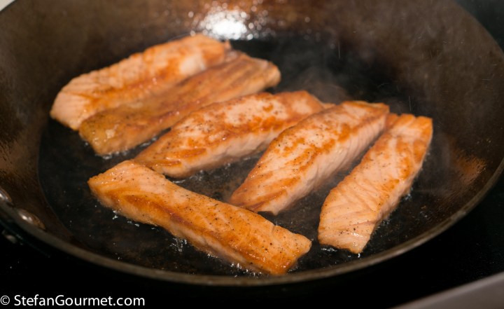 Turn the salmon and cook the other side 1 minute over high heat as well.