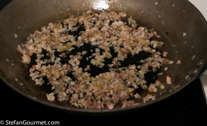 Heat a tablespoon of olive oil in a frying pan and add the pancetta mixture.