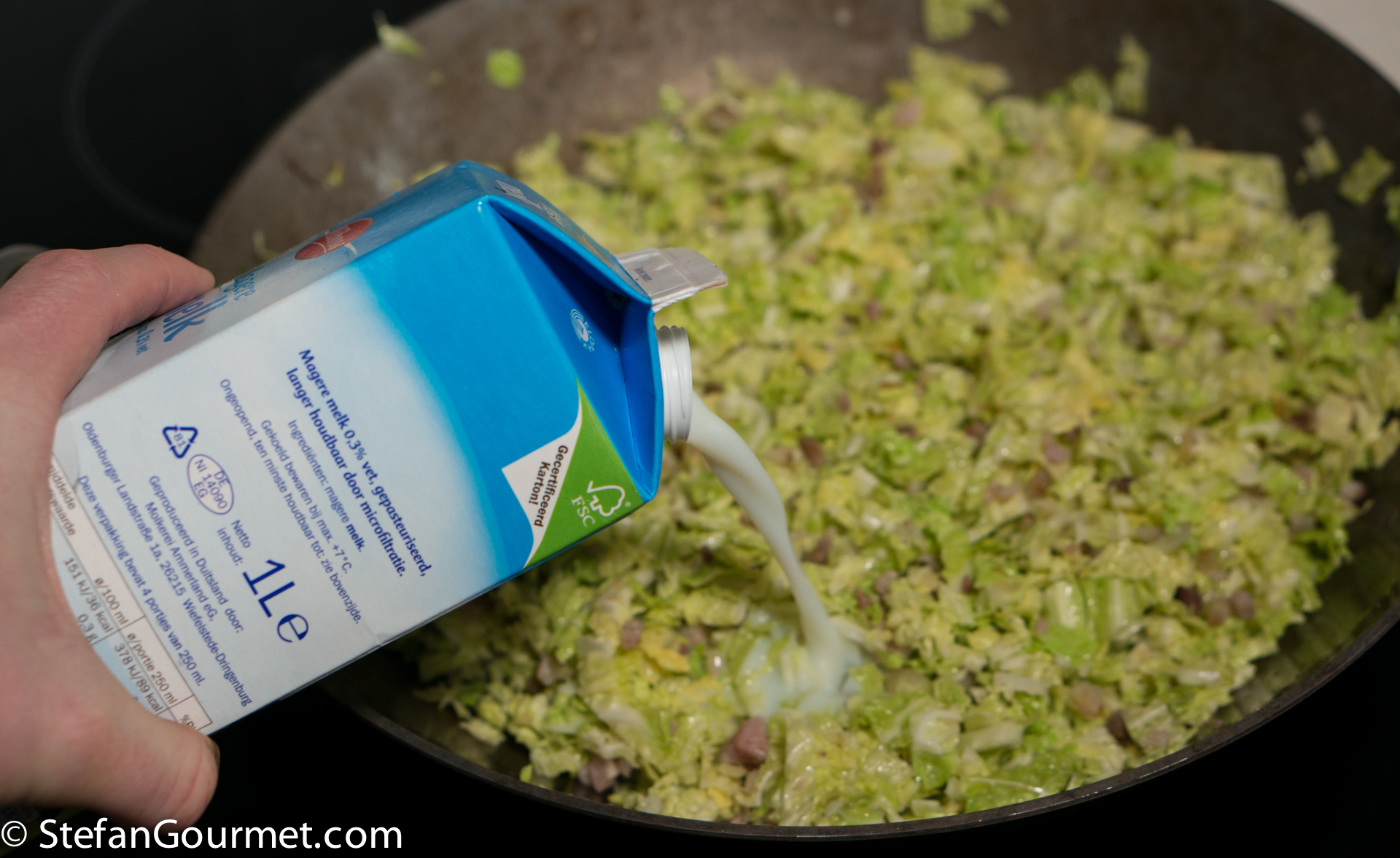 …which will take about 25 minutes. Stir regularly for even cooking. Allow the cabbage to cool somewhat.
