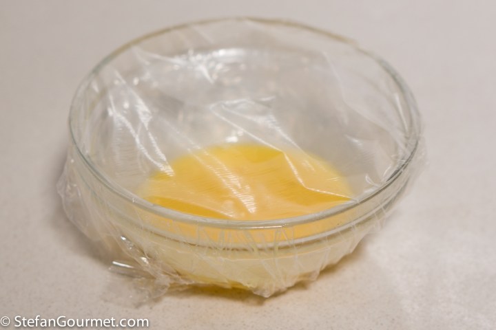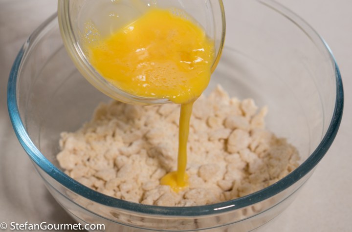 Save a bit of egg for brushing the crust later. Cover and refrigerate it.