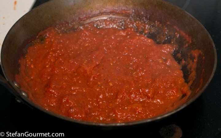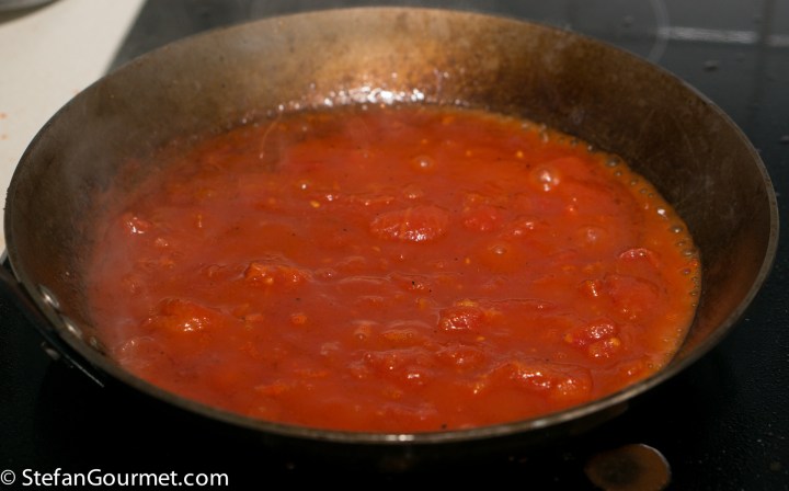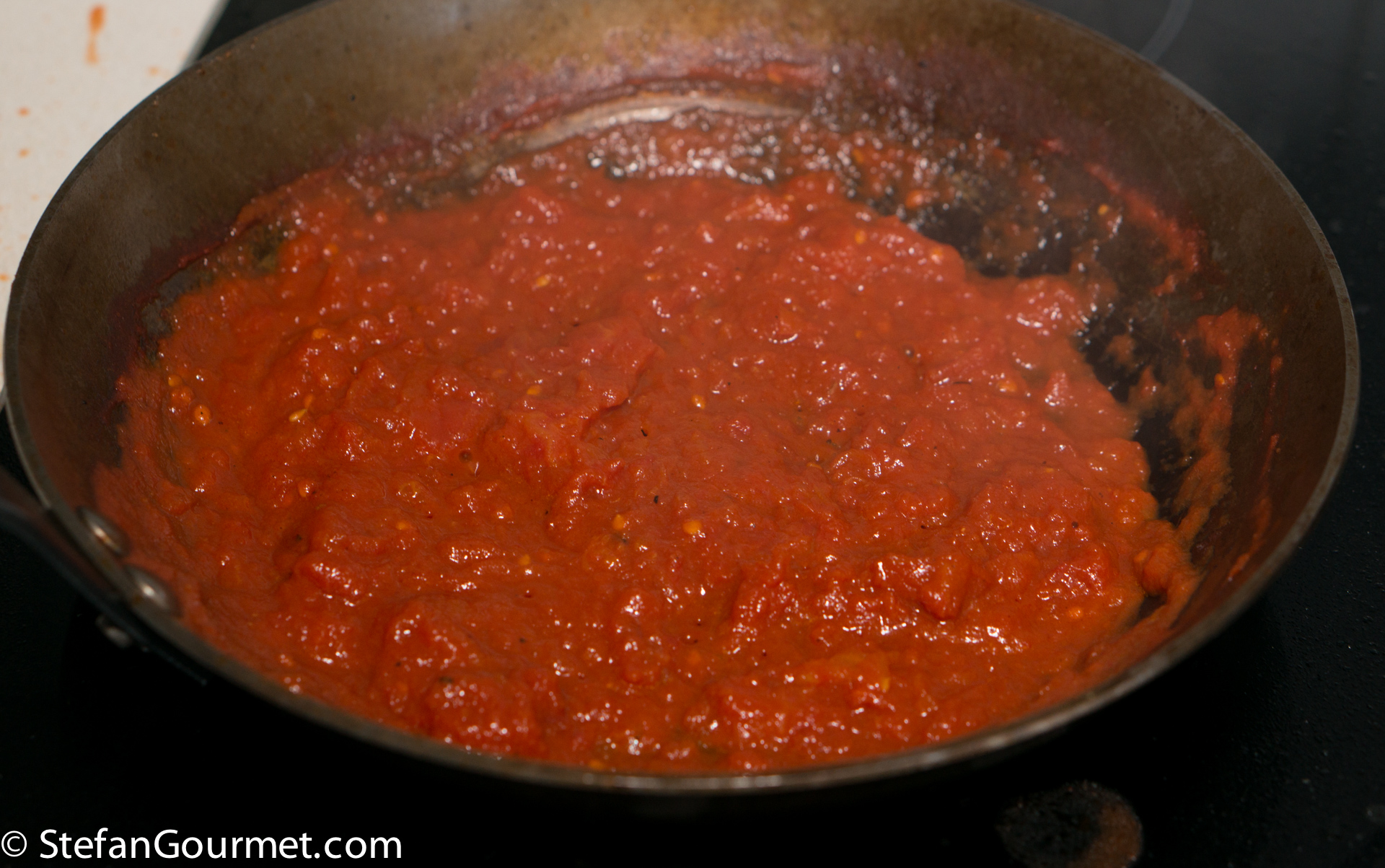 For the next experiment, I made a tomato sauce by searing the meat first and then deglazing the pan with chopped tomatoes…