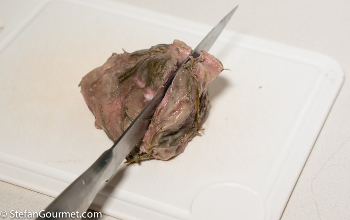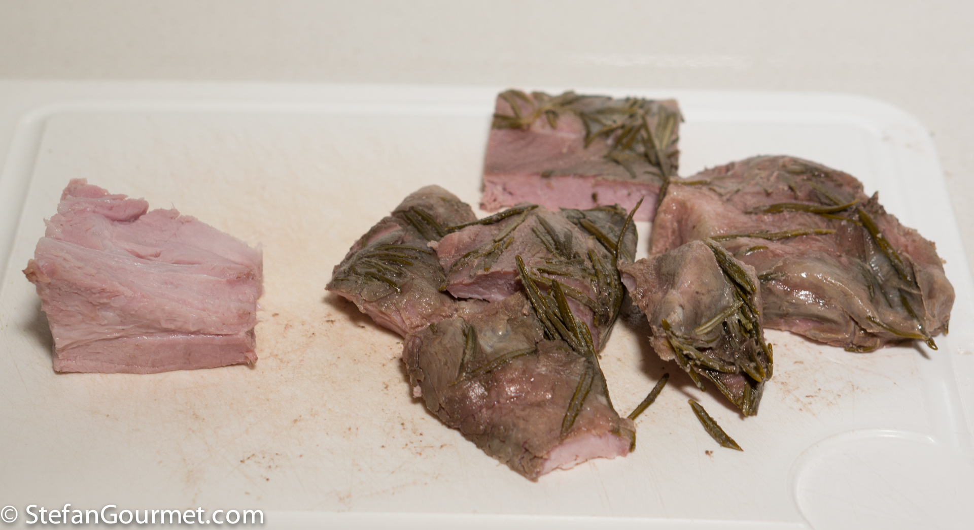 To see if any of the rosemary flavor had penetrated into the meat, I cut away the outside 1 cm (1/3 inch) of the pork…