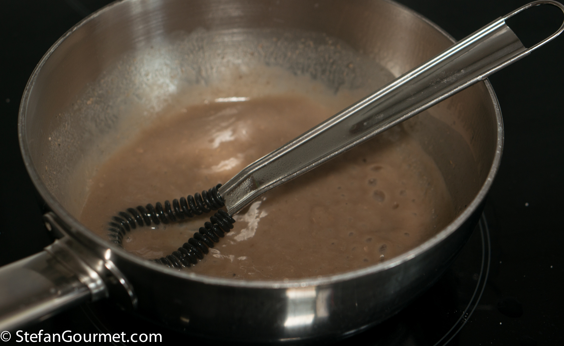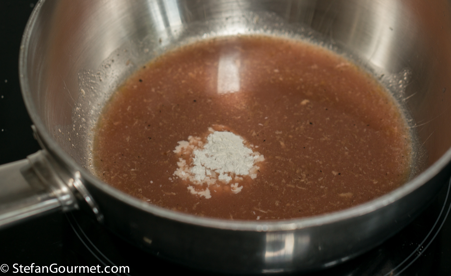 …whisked well, and then brought this to a boil while whisking. By using this technique, the juices will turn into a sauce without coagulating and with all the flavor that was in it. (If you allow the juices to coagulate and then filter out the ‘scum’, a lot of flavor will be filtered out as well.)