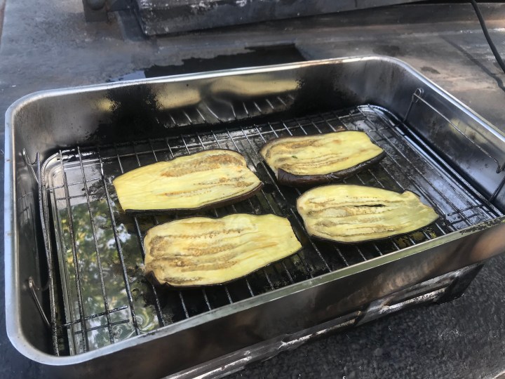 This is not the first recipe I’ve posted for eggplant and mozzarella, and it probably won’t be the last because they work really well together. What makes this version special is that the eggplant is smoked. I served this as an antipasto on the boat, which is why half of the photos were taken with my phone.
