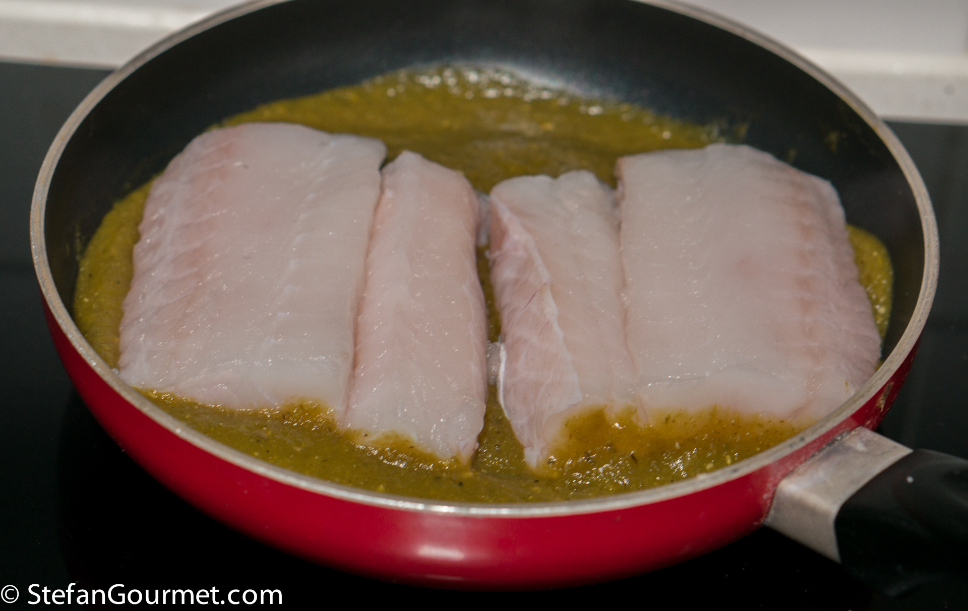 Gently turn the fish after 5 minutes, making sure it is again covered with sauce.