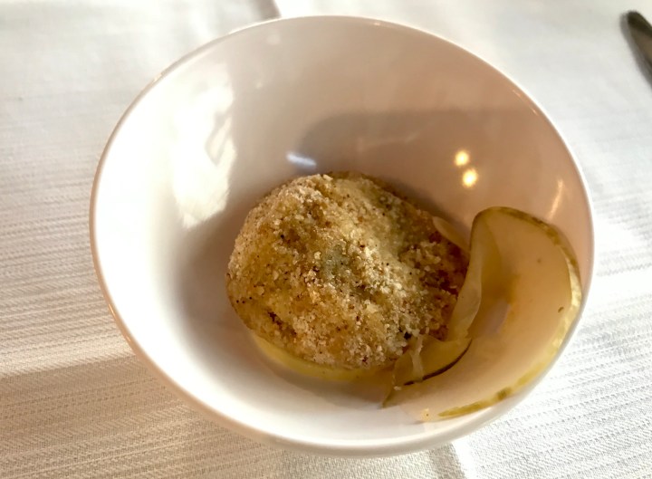 The greeting from the kitchen was a vegetable ‘meatball’ with pickled cucumber.