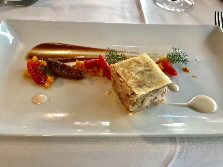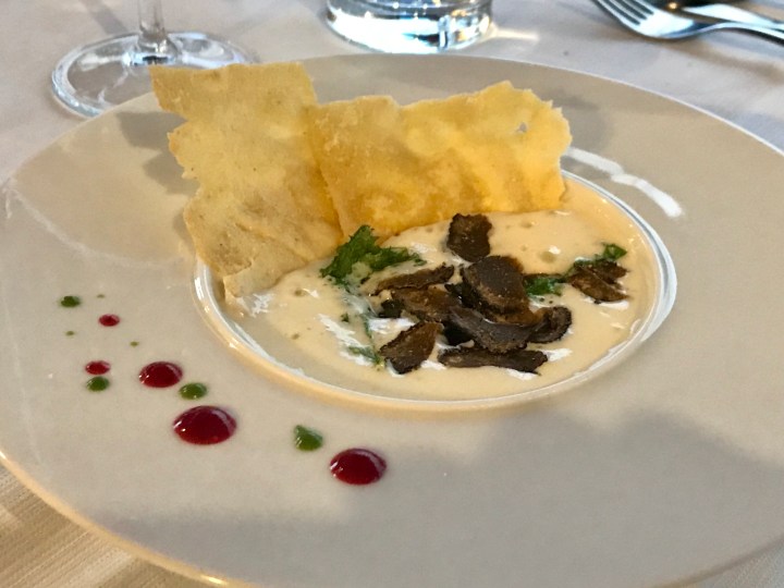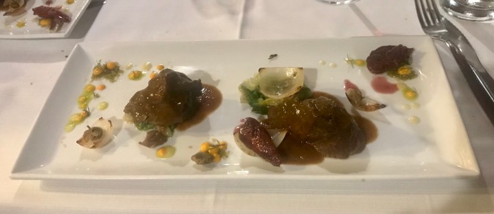 The second antipasto: a soft egg with foam of Fiore Sardo cheese and truffle from Sarcidano. This was delicious and full of flavor and paired very well with a Malvasia. This wine was made in an oxidative style with notes of almonds that worked very well with the cheese.