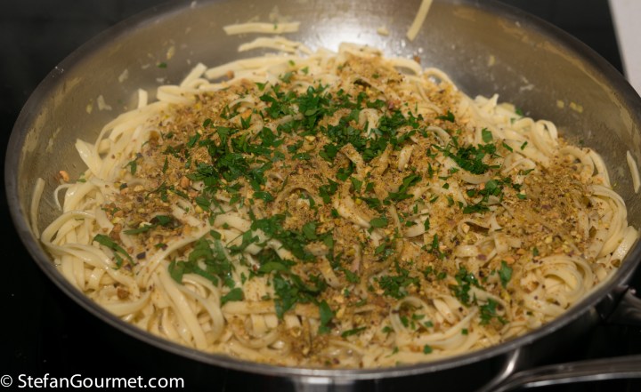 1. What a simple but promising dish as I do not remember having prepared a fish and pistachio pasta before. Love it being different but so simple and elegant at the same time. Well, at this busy time of the year store-bought fresh pasta may have to suffice and you know my methods of cooking fish . . . but with well-made fish stock at home I am certain me and mine will enjoy the meal . . .