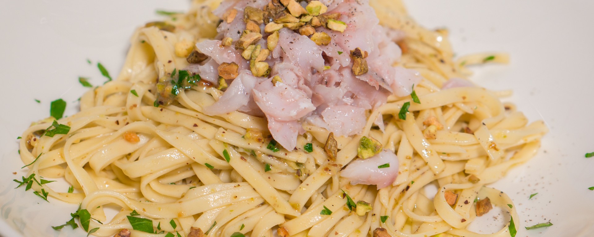 Pasta with Red Mullet Sous-Vide and Pistachios (Taglioni con Triglie e Pistacchi)