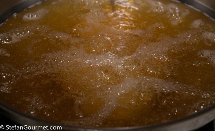 …3 to 4 minutes. As soon as they are golden brown, lift them out of the oil…