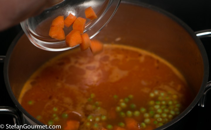 50 grams (1/3 cup) diced carrot (about the same size as the peas)