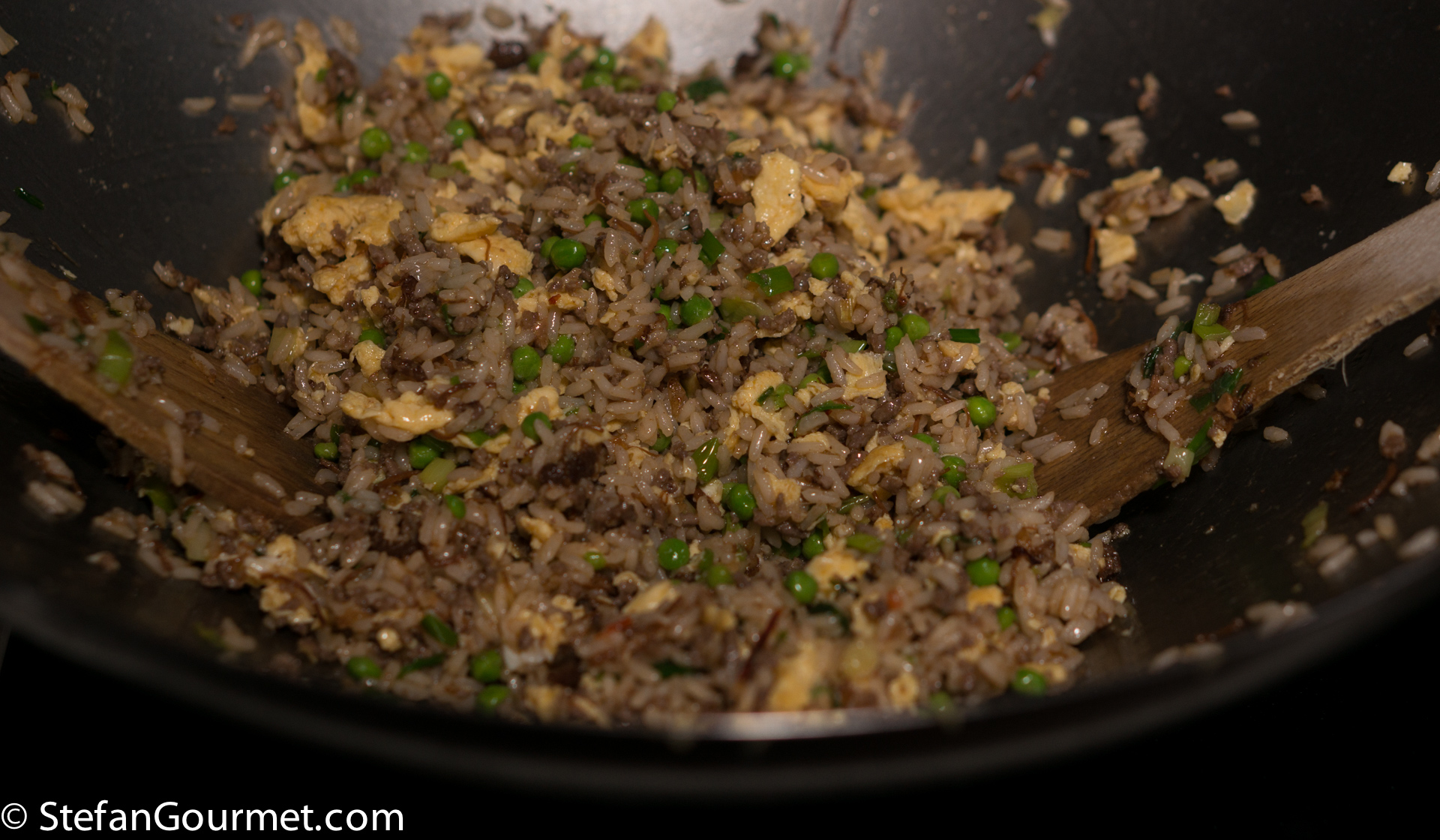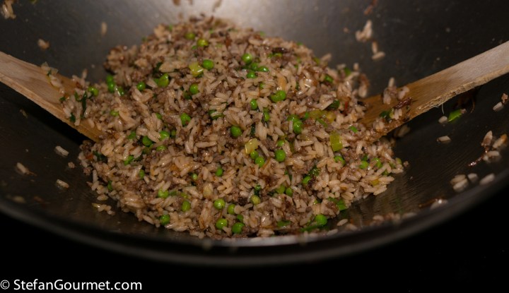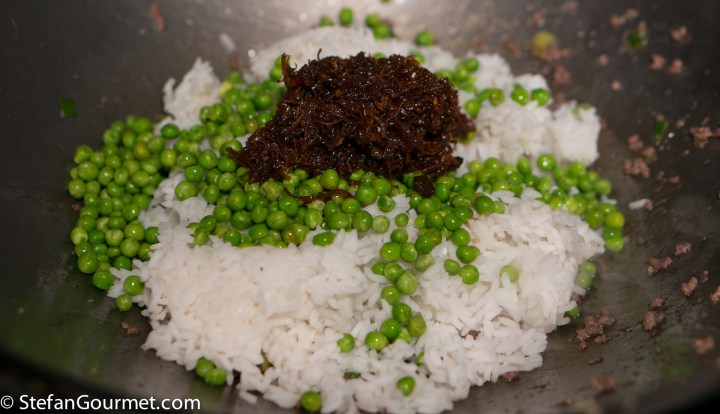 Thanks to the recipe that was included with the jar of XO sauce I had bought for another dish, I have now discovered another great way of making fried rice next to my usual recipe. The blend of flavors is great: very slightly spice from the XO sauce and with a wonderful mix of the seafood and beef. Rather than a side, this is more like a main. Just add some stir-fried vegetables like cabbage or gai lan, and you have a full meal.
