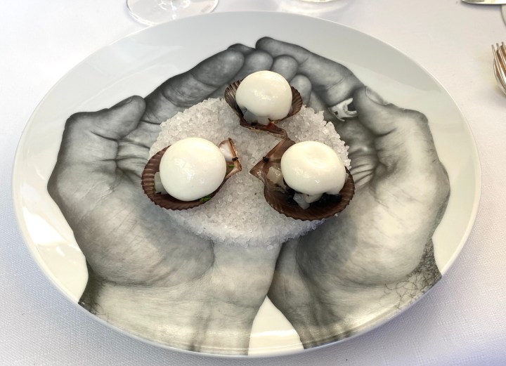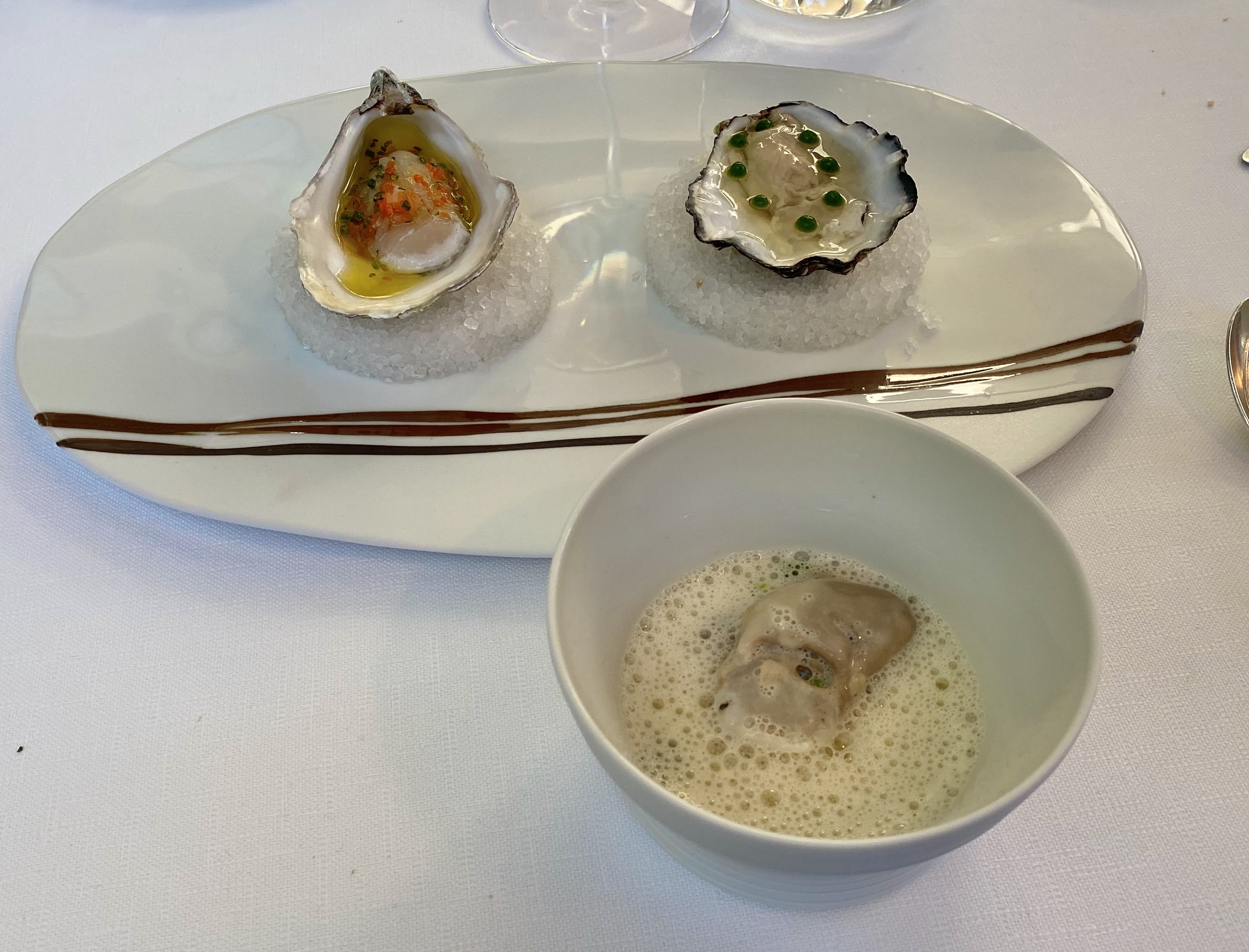 We mentioned to the sommelier that it would be impossible to pair all three oysters with one wine, and asked him whether he had discussed this with the chef. He responded that there was no way that he could ask the chef to change a dish to make it work better with wine. According to him the chef doesn’t taste the wines and leaves it all to the sommelier. He also said he likes the freedom this gives him.