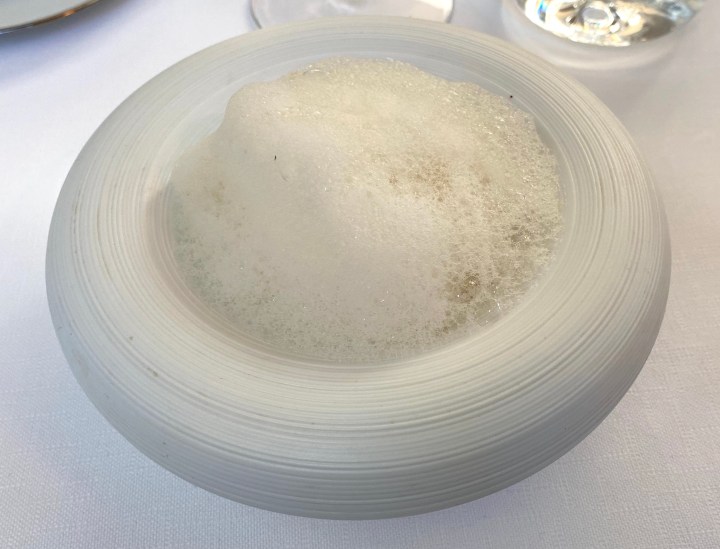 The chef really seems to like emulsions and foams, because there was an emulsion of foie gras underneath this foam of parmesan, with a reduction of port.