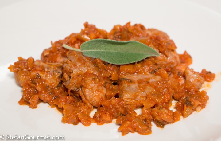 Today’s flashback is very appropriate, because this spezzatino of turkey is quite similar to pollo alla cacciatora. In Italian spezzatino means a stew in which the meat has been cut into pieces.