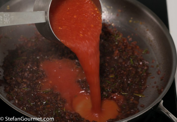 250 ml (1 cup) sieved tomatoes (passata di pomodoro, tomato puree, or canned tomatoes pureed in the food processor)