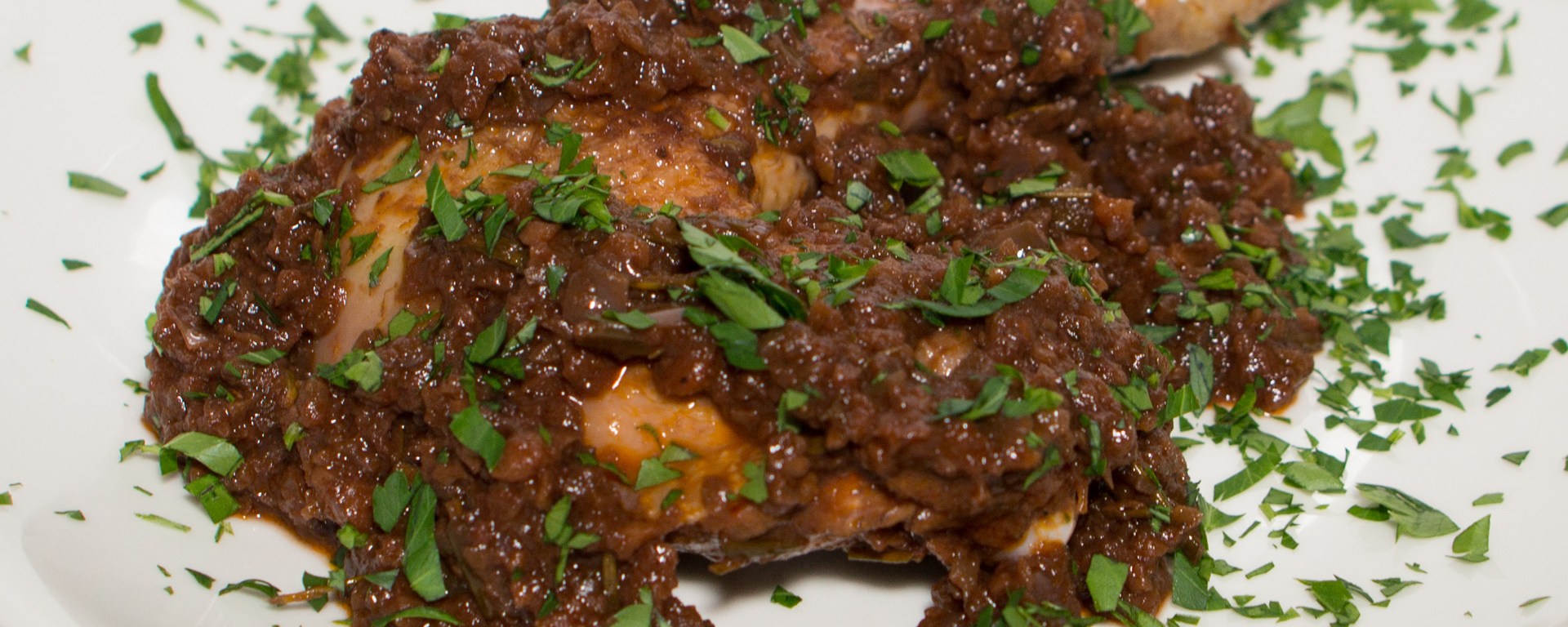 Serve the chicken with the sauce, sprinkled with minced parsley.