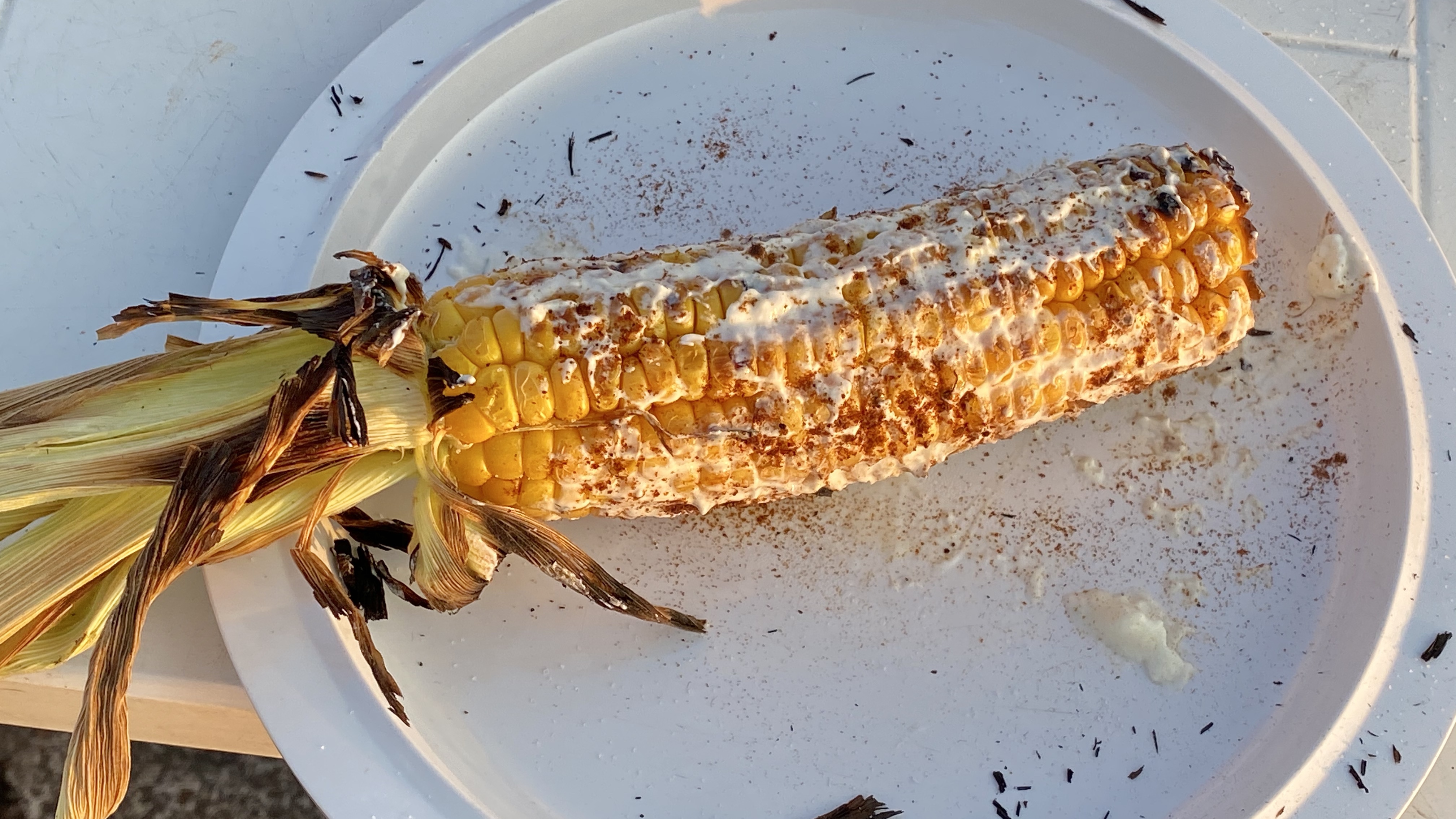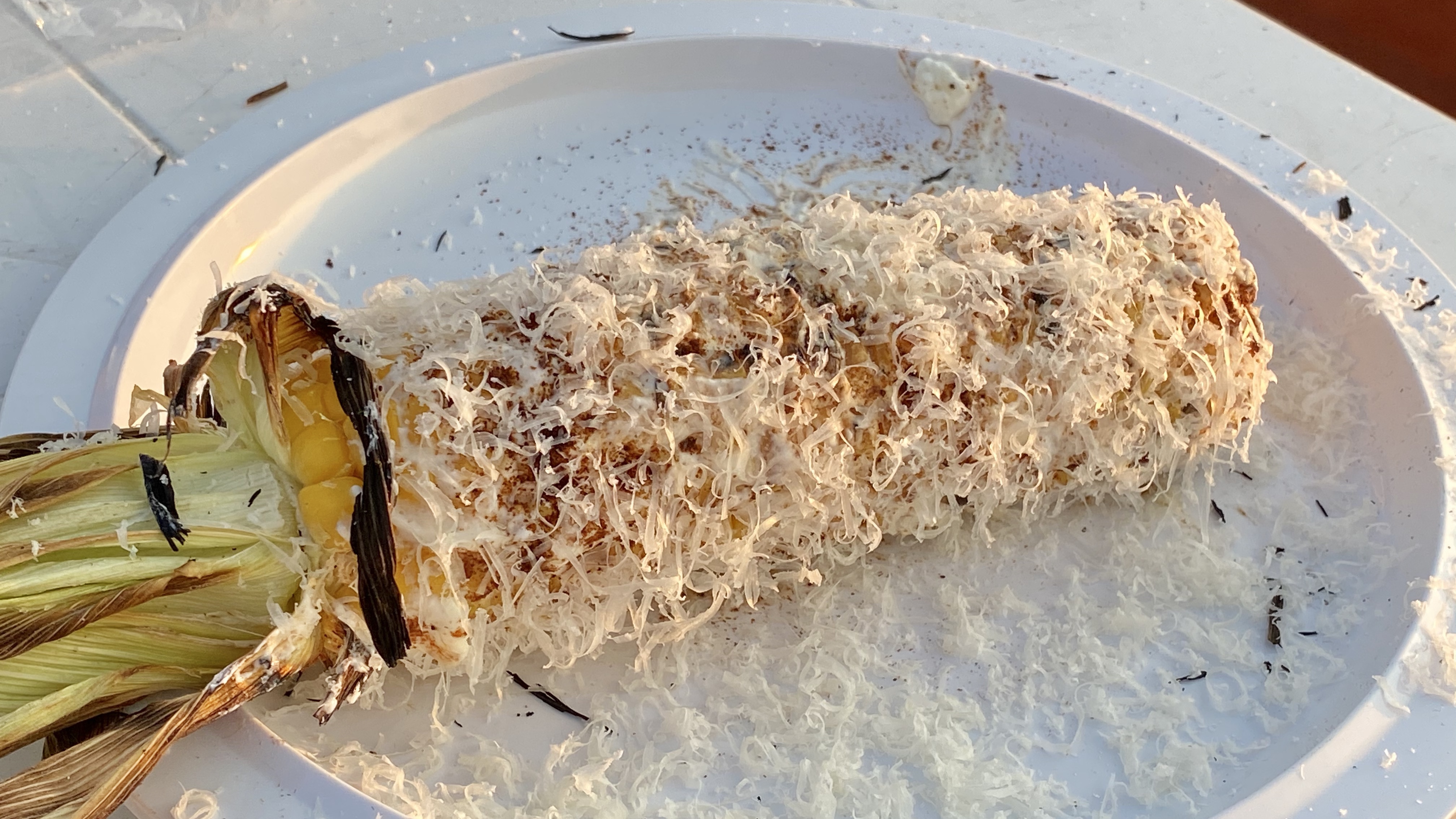 My favorite way to eat grilled corn. We often skip the cheese, and it is spicy mayo which plays a major role for us.