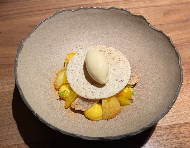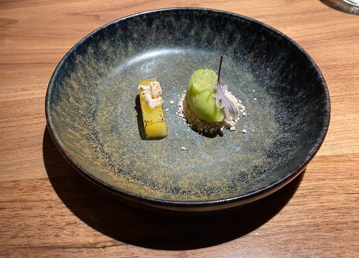 The pre-dessert was basil sorbet and grilled pineapple.