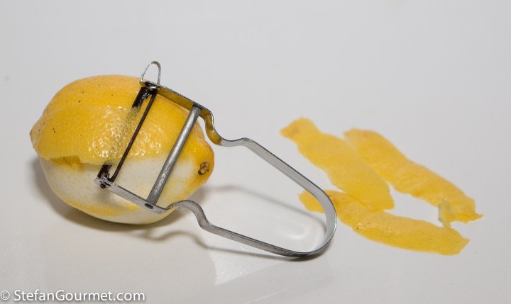 Use a vegetable peeler to obtain the rind of the lemon.