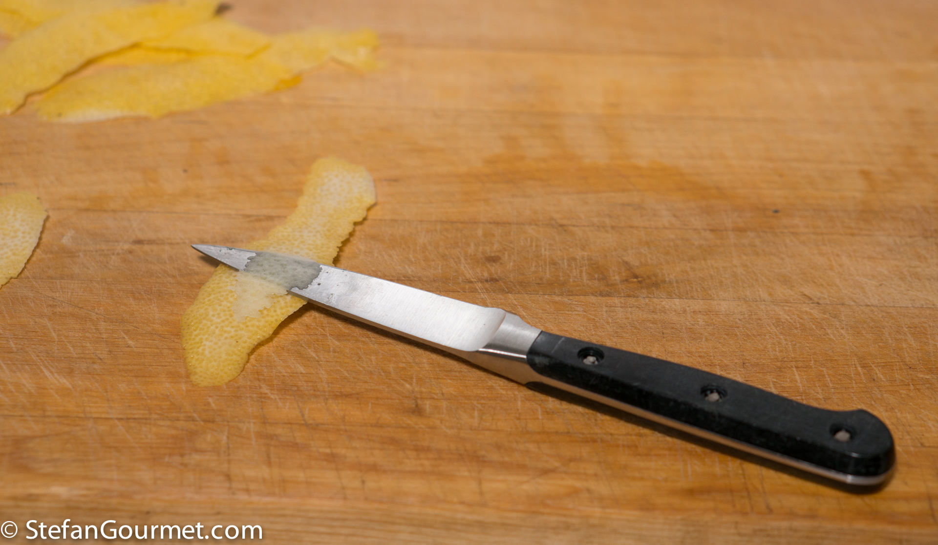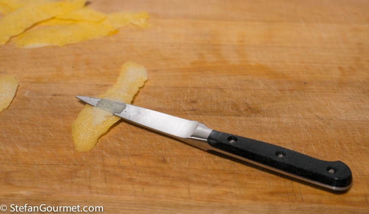 Use a very sharp pairing knife to remove as much as the white pith from the lemon rind as possible, as it gives off a bitter flavor. You only want the yellow part.