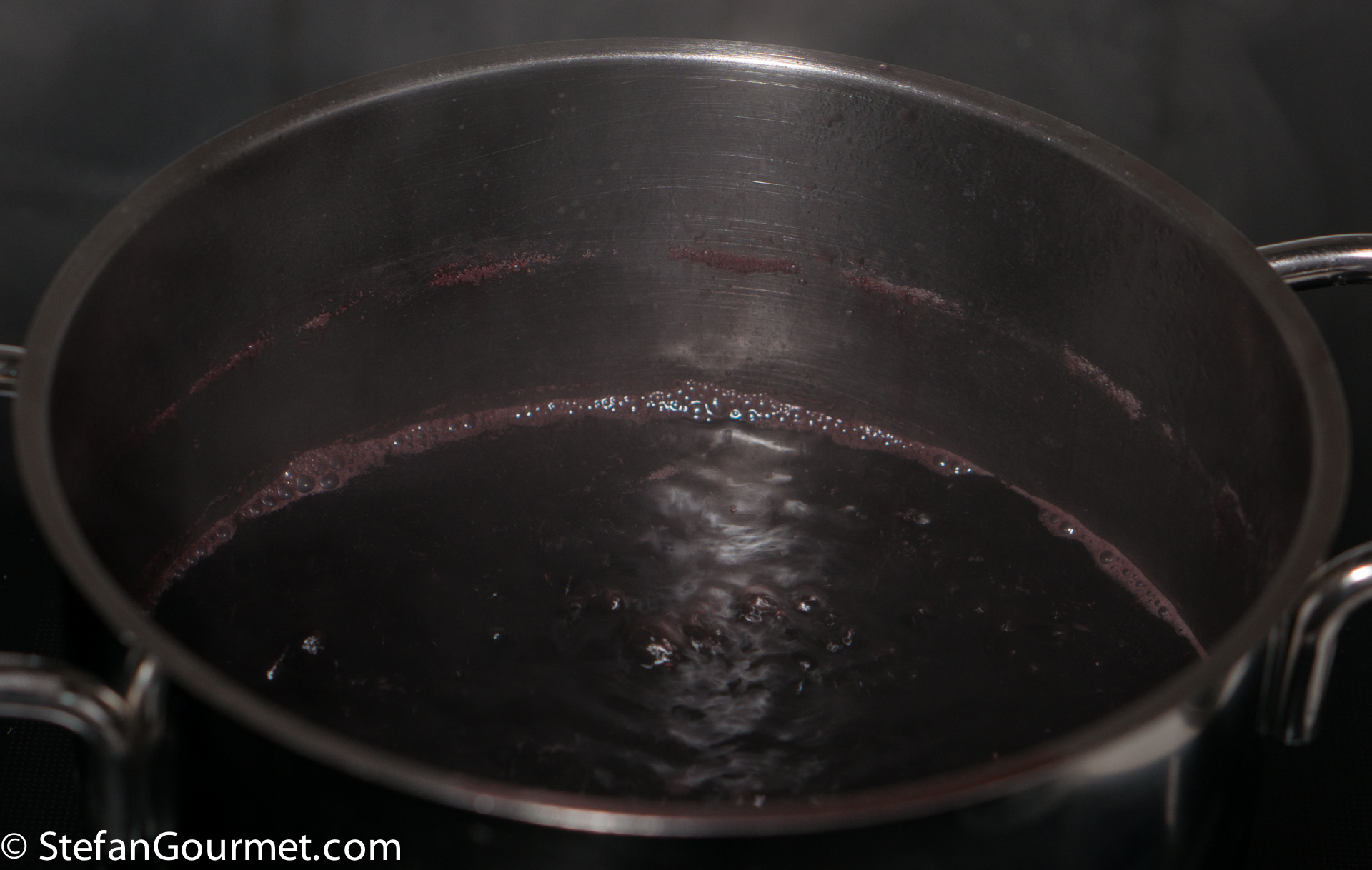 This sauce does not need to be reduced, because the alcohol has already been removed before the sous-vide step.