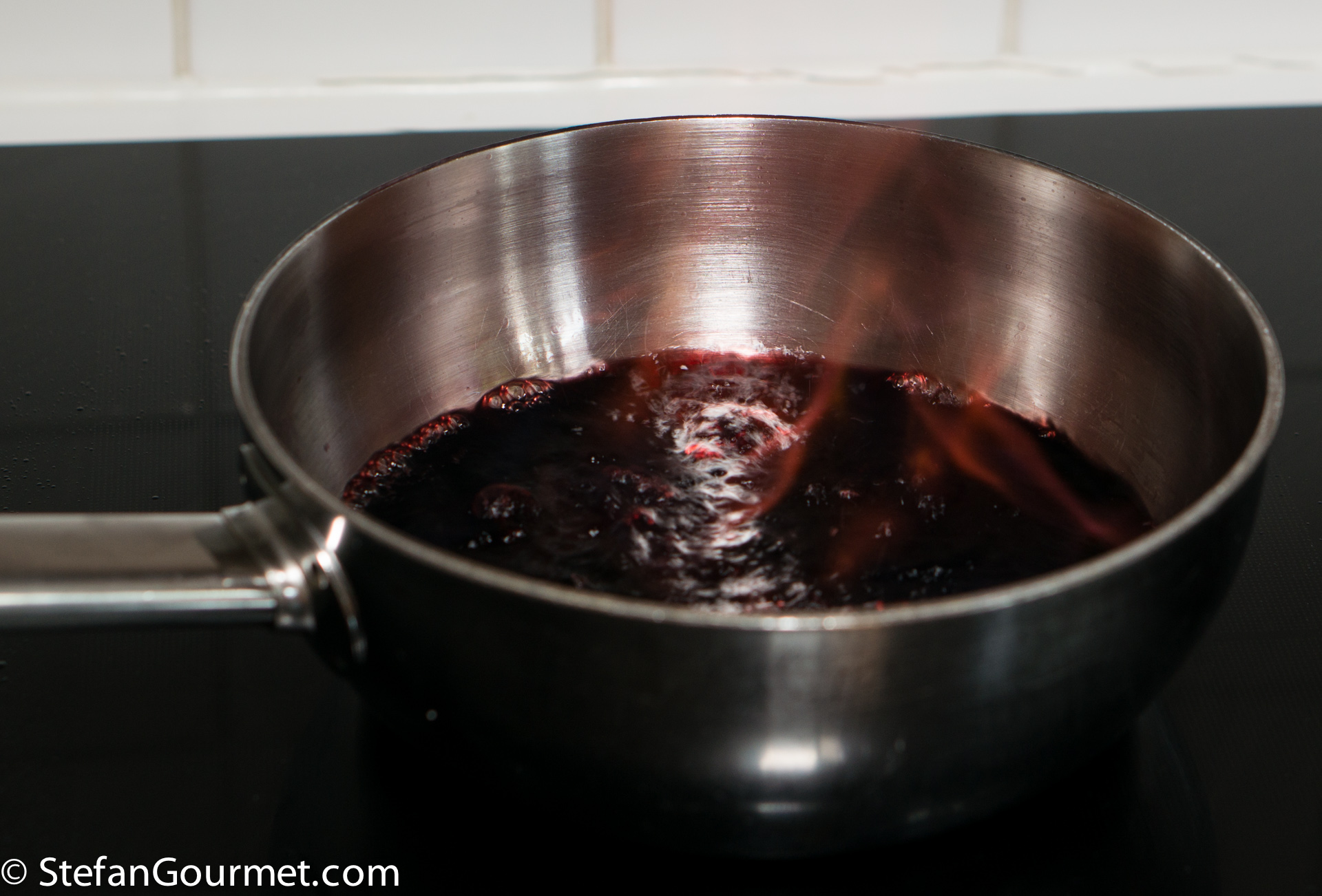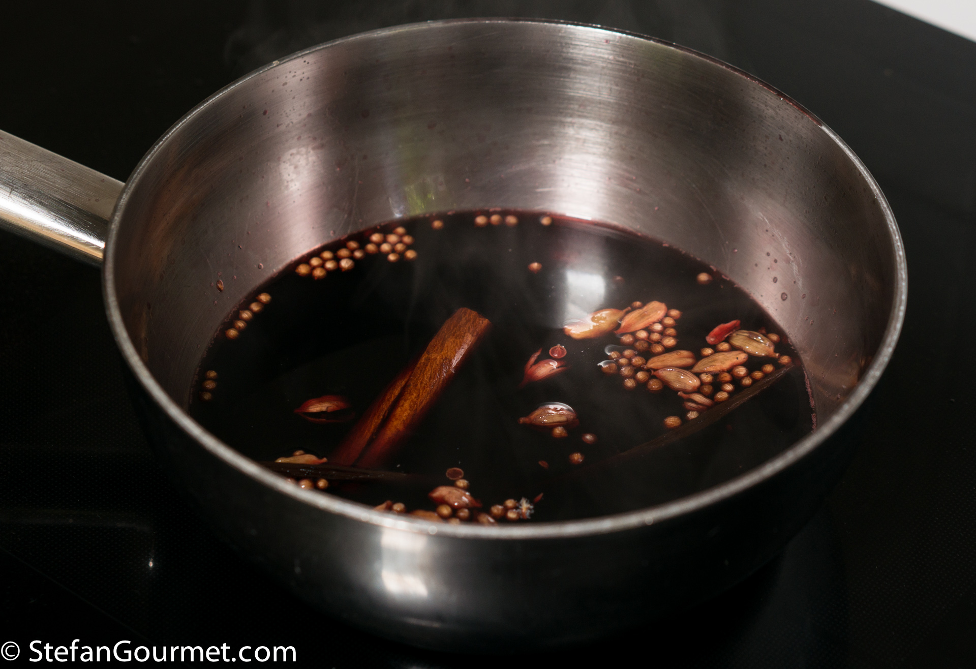 In this version less sugar is used, because port is already quite sweet. Still the sauce is stronger because of the spices.